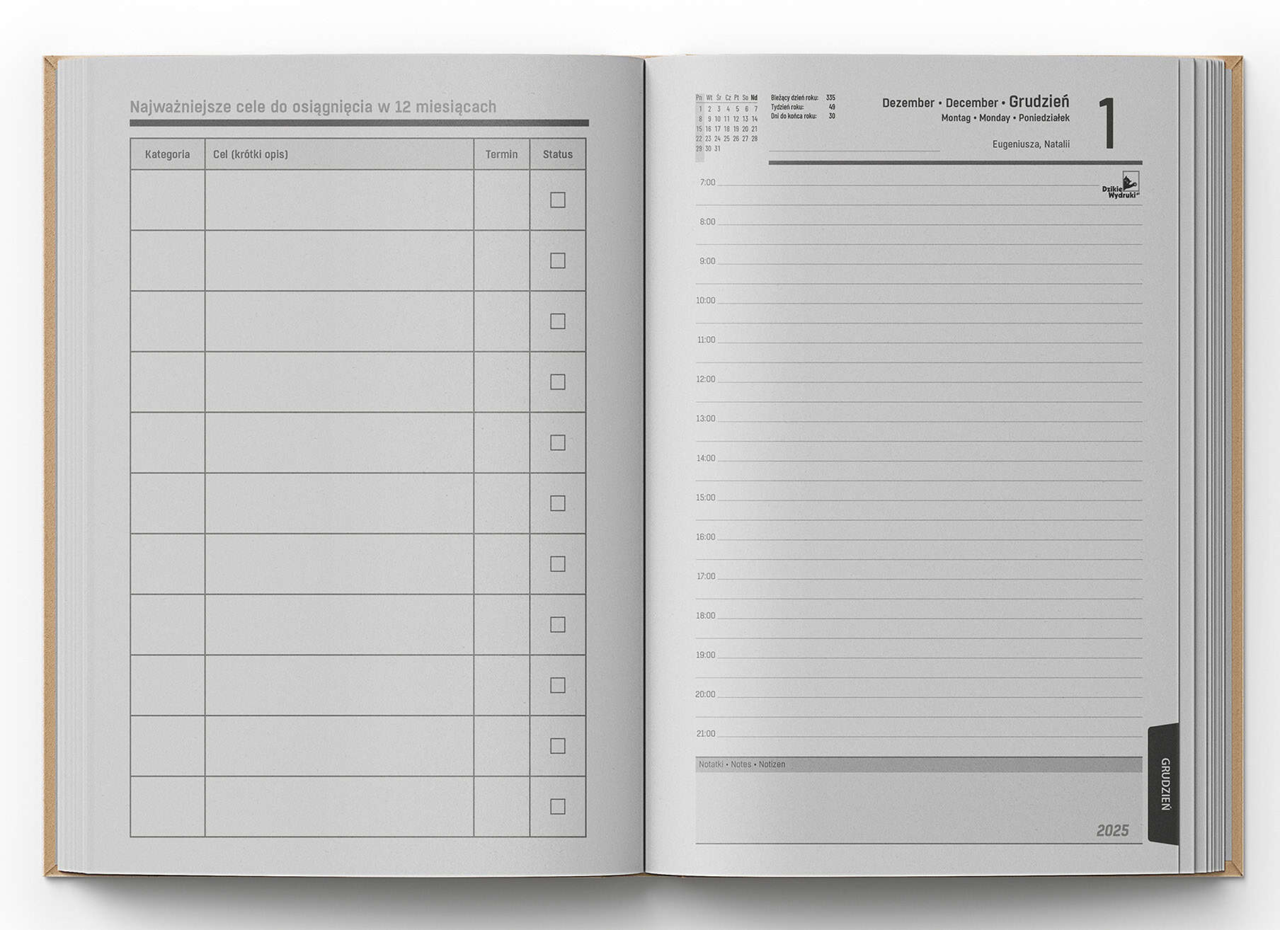 Uniwersalny – Dzienny Personalizowany kalendarz książkowy