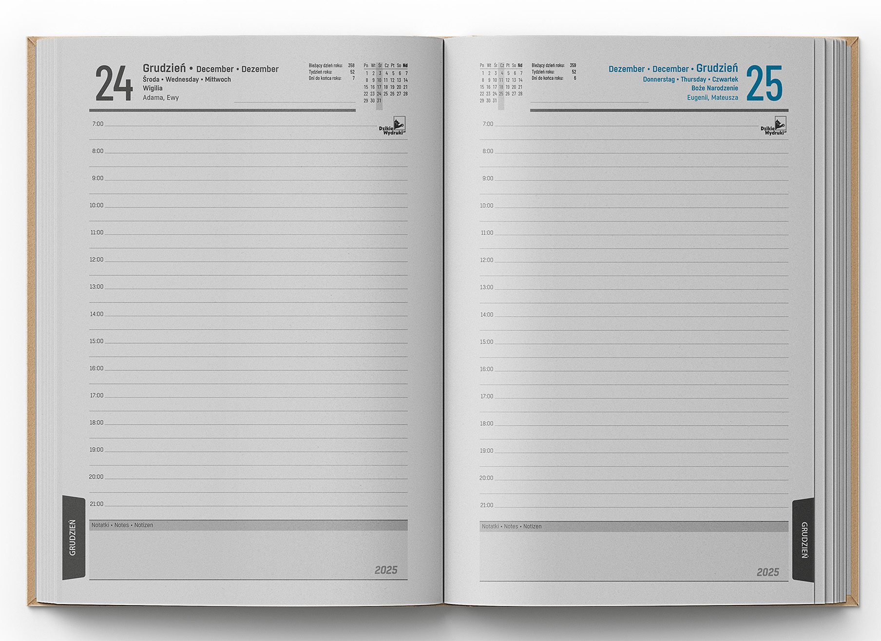 • Kolorystyka kalendarium: dwukolorowa (niebieski + czarny)